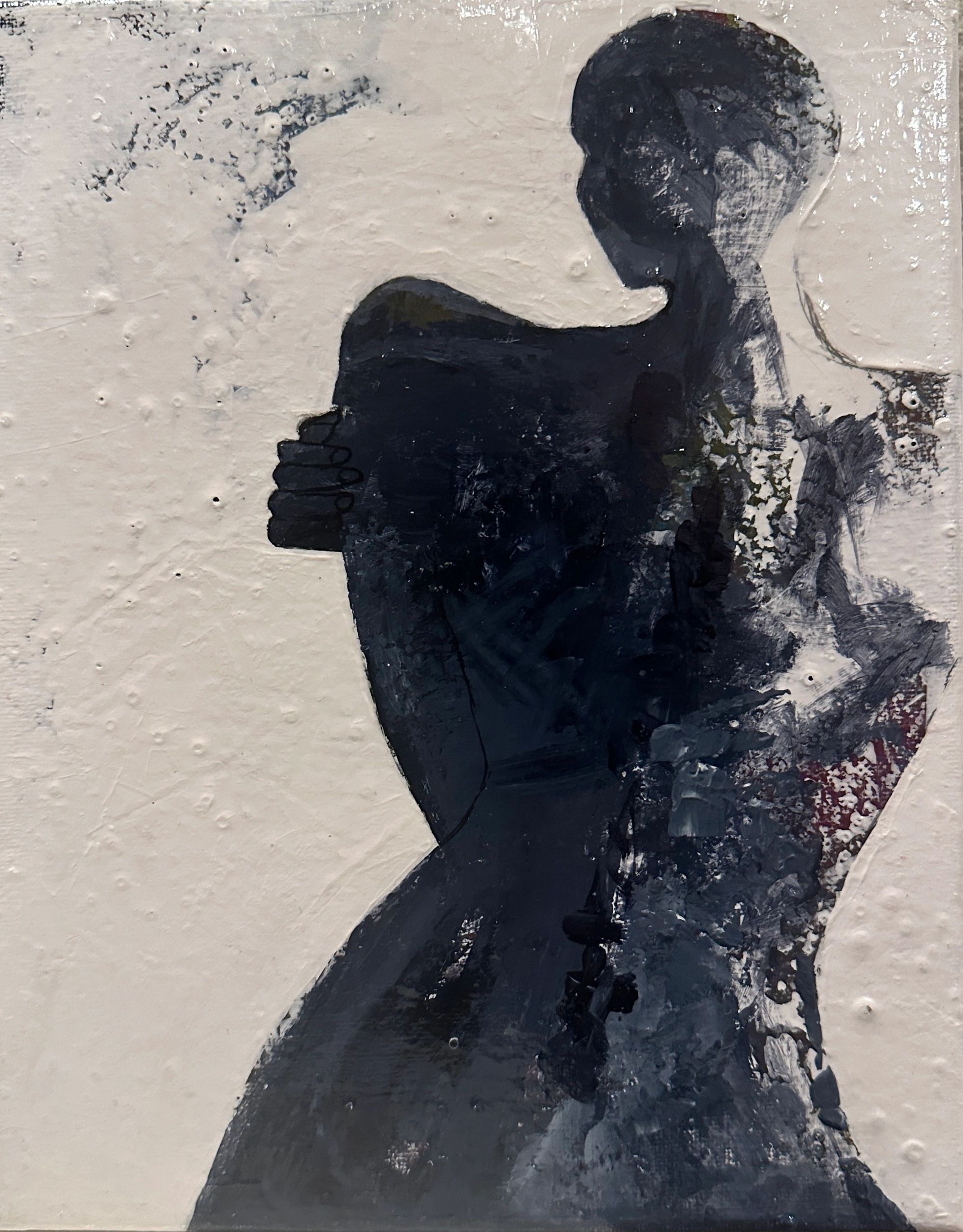 8" X 10" X.5" many-layered , thus textured, mixed-media on gallery-wrapped canvas.